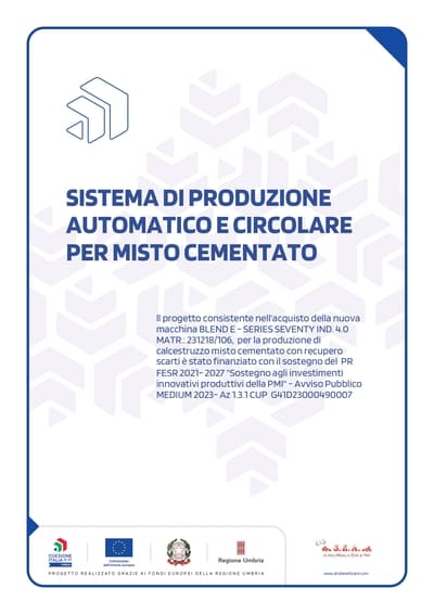 Nel 1987 la società viene iscritta al Provveditorato Regionale OO.PP. per l'Umbria (A.N.C.). A seguito di questa certificazione si è ottenuto la possibilità di eseguire Opere Pubbliche.